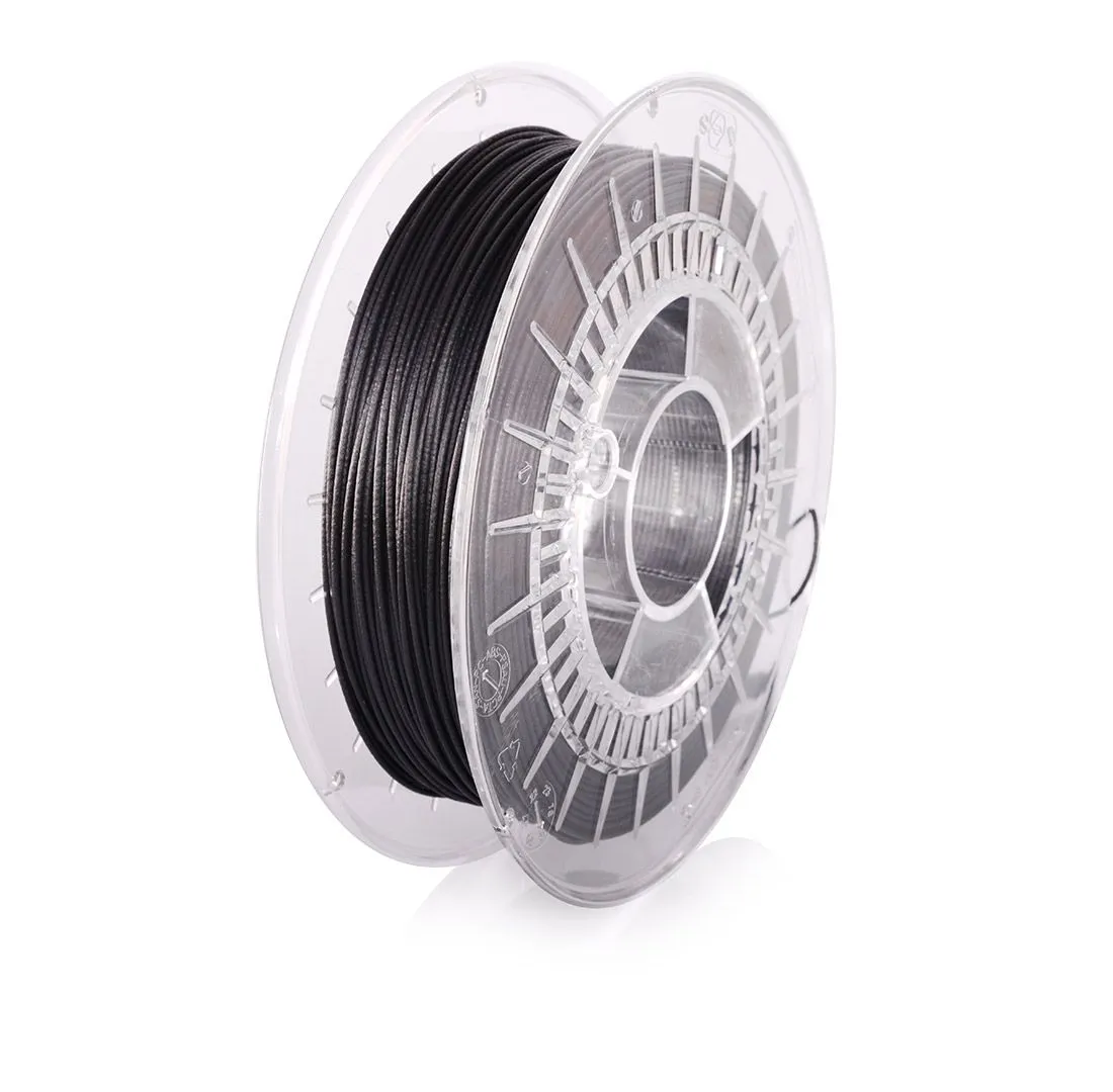 (polyethylentereftalát s přísměsí glykolu a uhlíkových vláken) je filament se zvýšenou odolností a snadným tiskem. Vytísky mají velmi nízké smrštění, jsou bez zápachu a mají velmi pevnou soudržnost vrstev. Filament PET-G + CF je bez zápachu. Materiál se vyznačuje grafitem, matným povrchem a hladkou až saténovou strukturou. Tento materiál má vysokou chemickou odolnost a díky přidání uhlíkových vláken i vysokou mechanickou a rázovou pevnost. Díky čemuž si najde univerzální uplatnění.
