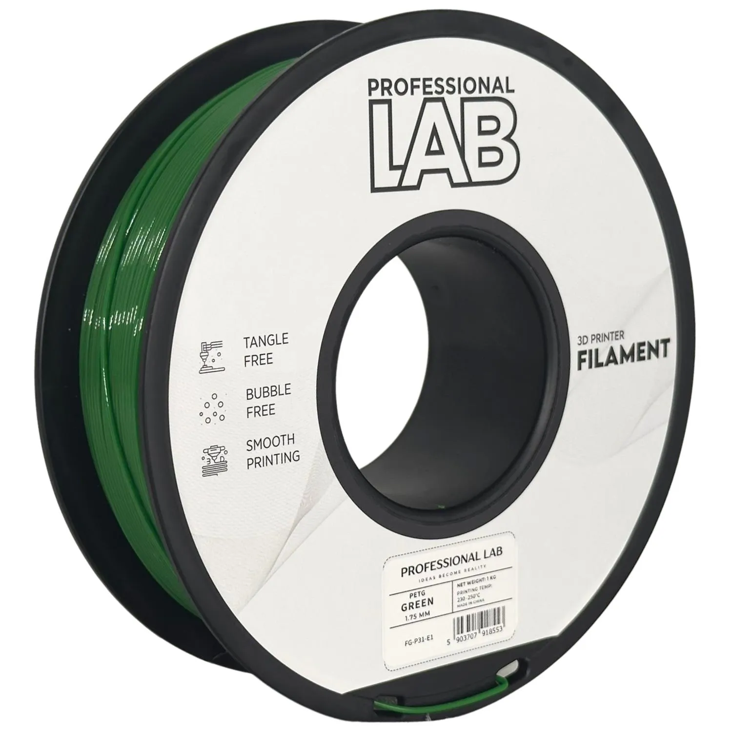 Filament PET-G zelená Professional Lab – pevný, odolný a snadno tisknutelný filament pro funkční 3D díly