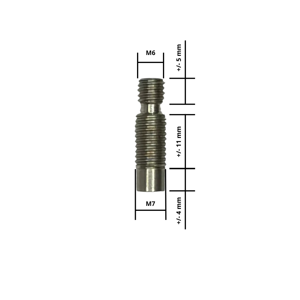 Heatbreak E3D V6 – krátká varianta (M7 závit, 11 mm do chladiče) je klíčová součást hotendu, která odděluje vyhřívaný blok od chladiče a zajišťuje správný tepelný přechod. Díky závitu M7 je určena pro kompaktní chladiče typu V6 a poskytuje spolehlivé uchycení.